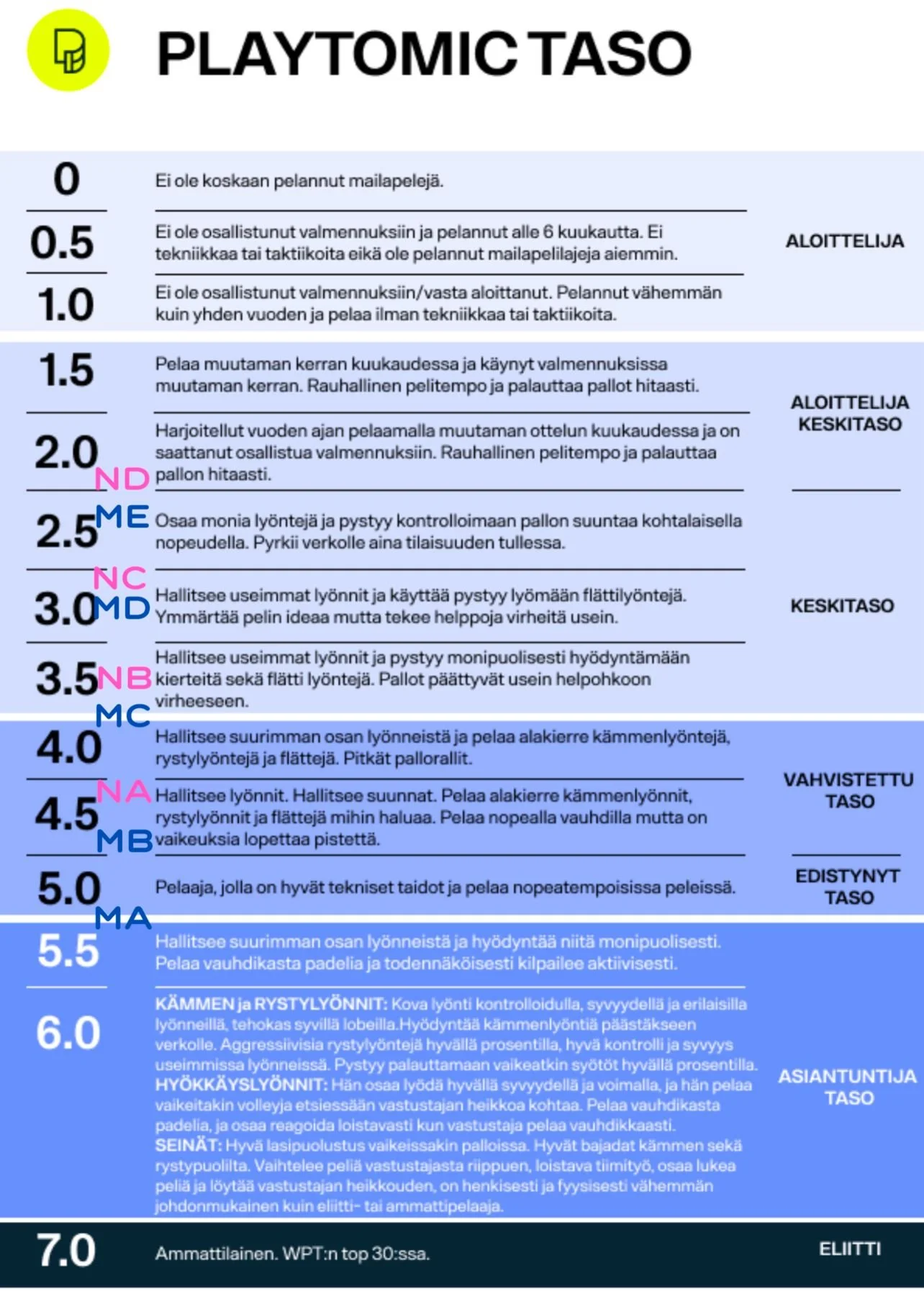 Auttaa pelaajia löytämään todellista pelitasoa vastaava Playtomic-taso. Formaatti voi vaihdella (esim. Americano, King/Queen of the Court, tasoluokkapelit), mutta tapahtuman jälkeen halukkaille tarjotaan mahdollisuus päivittää oma taso suuntaan tai toiseen – jotta tulevat pelit ja tapahtumat osuvat paremmin kohdalleen.