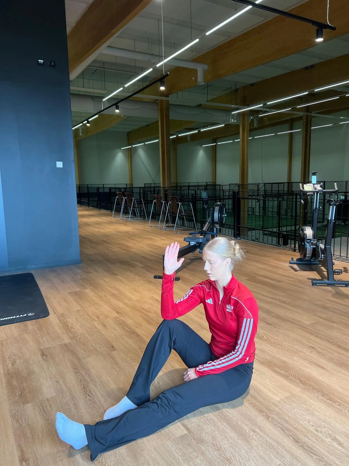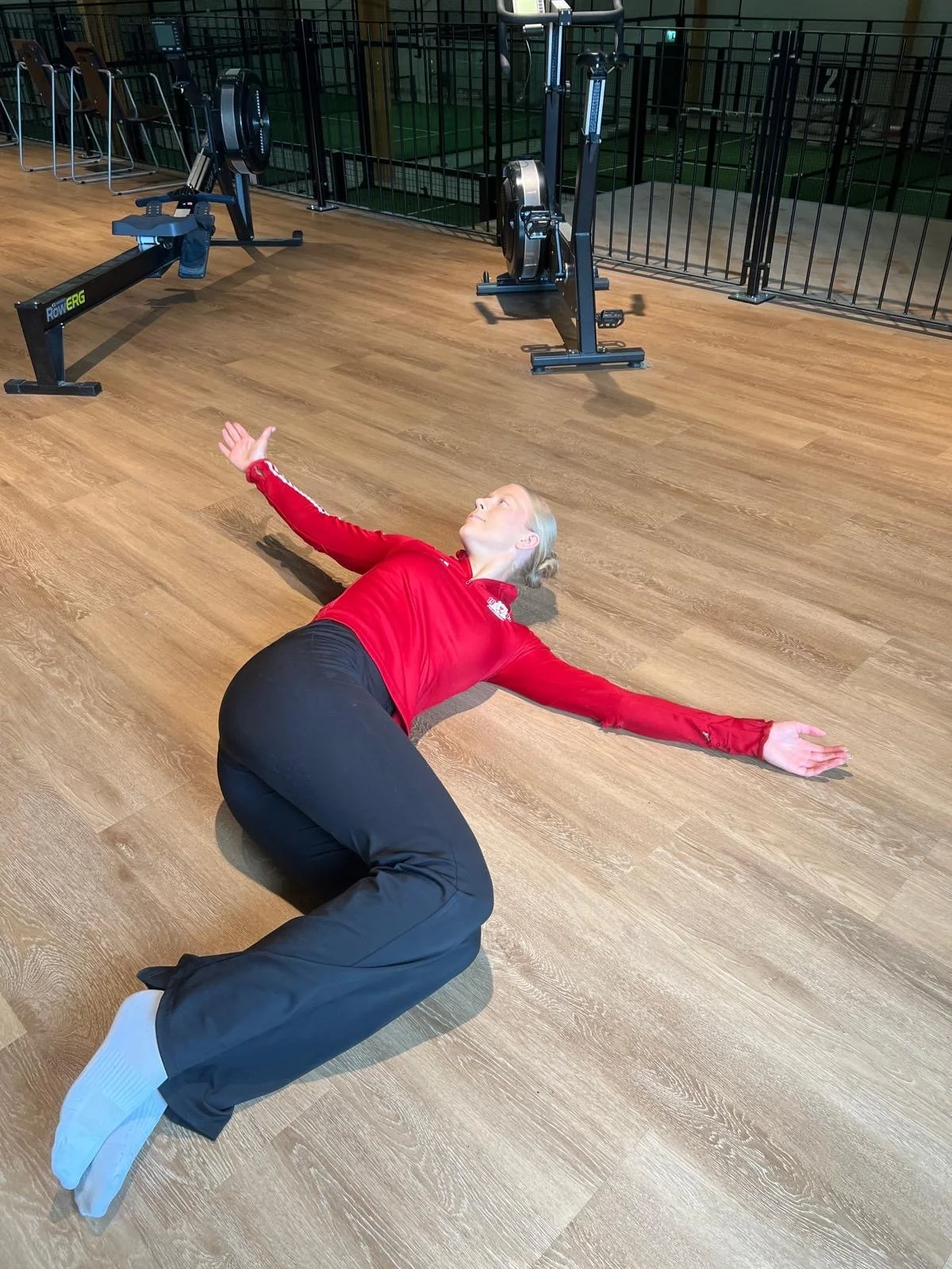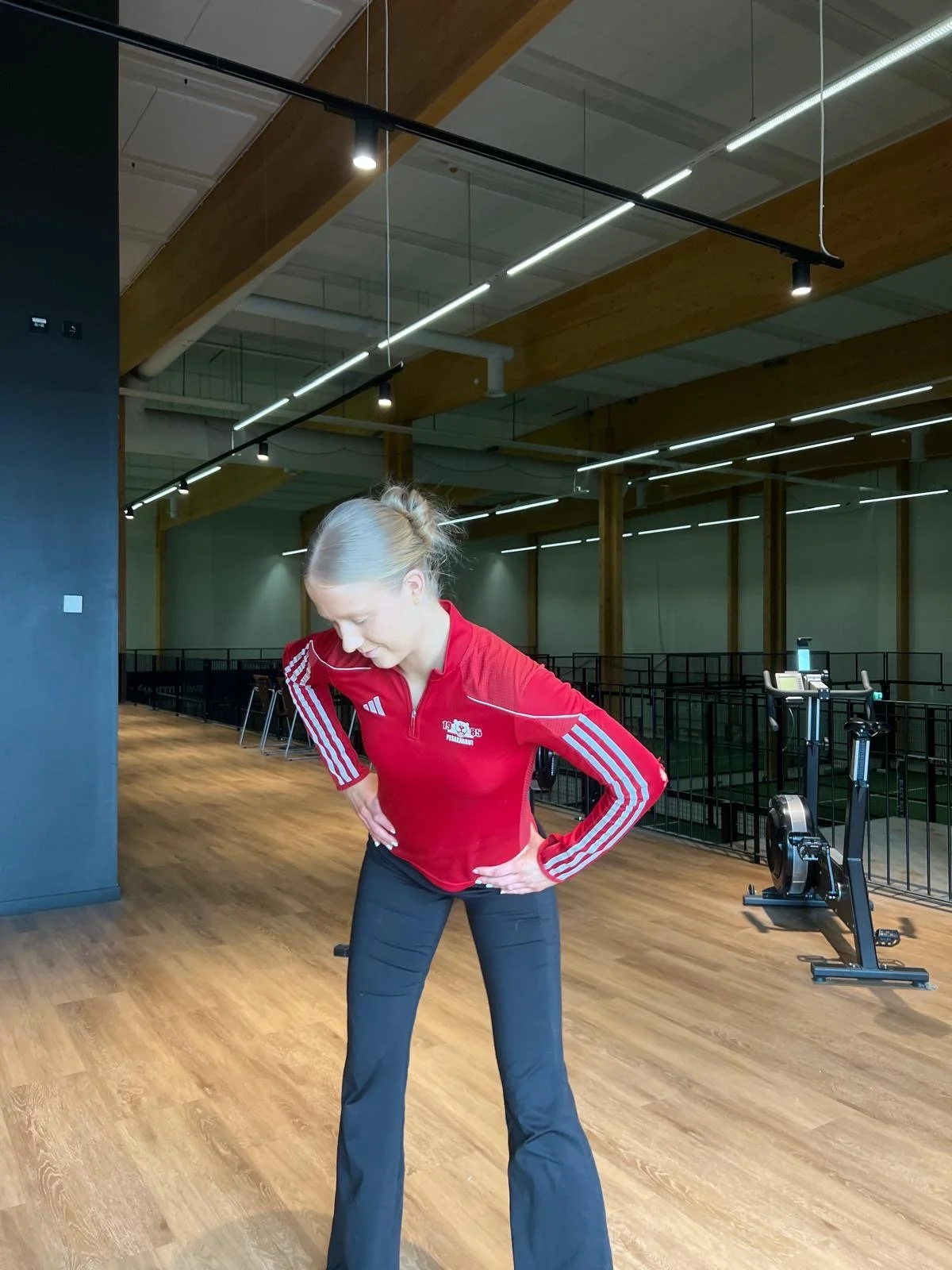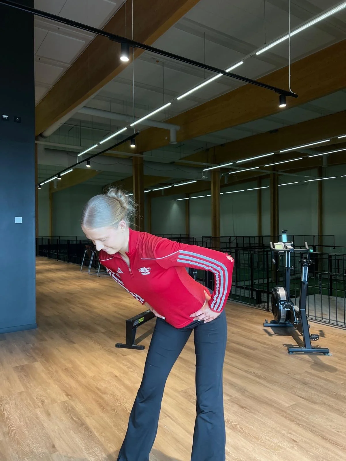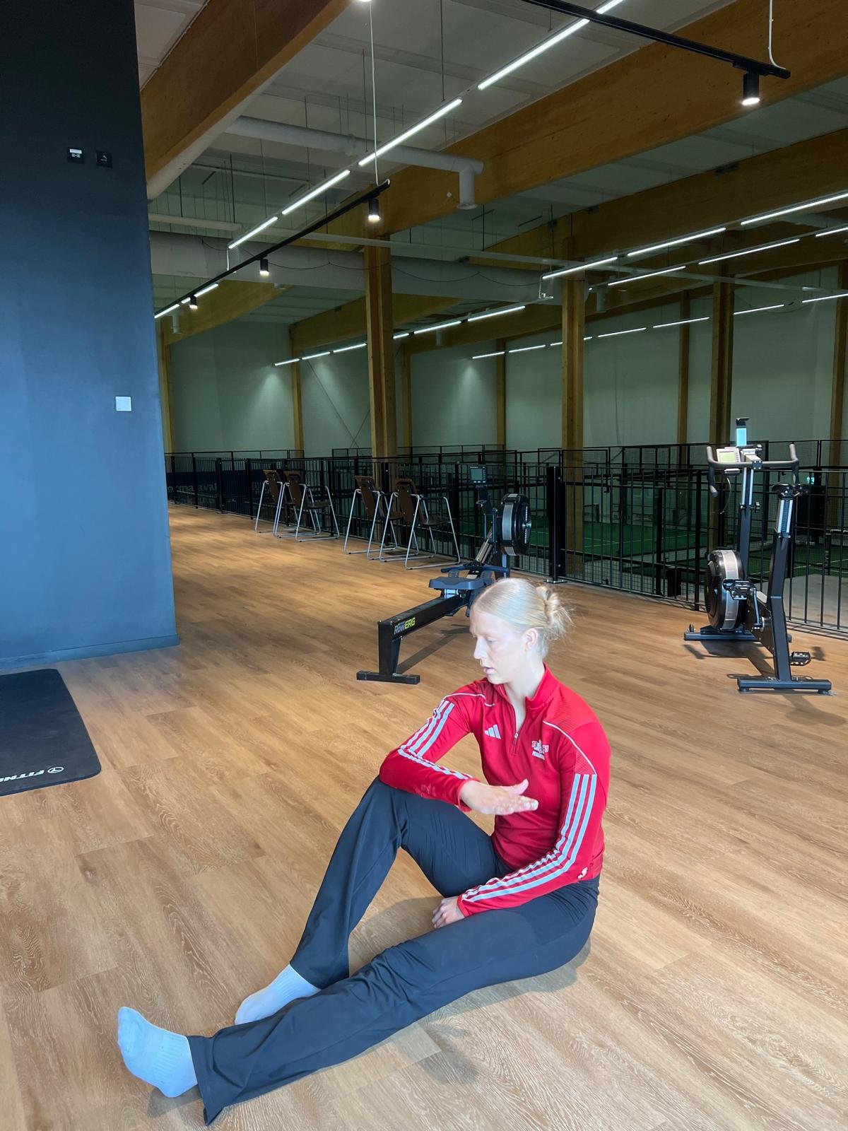 Seiso jalat leveällä kurotu alas ja kädet leveällä lähde kiertämään kroppaa kumpaankin suuntaan vuorotellen