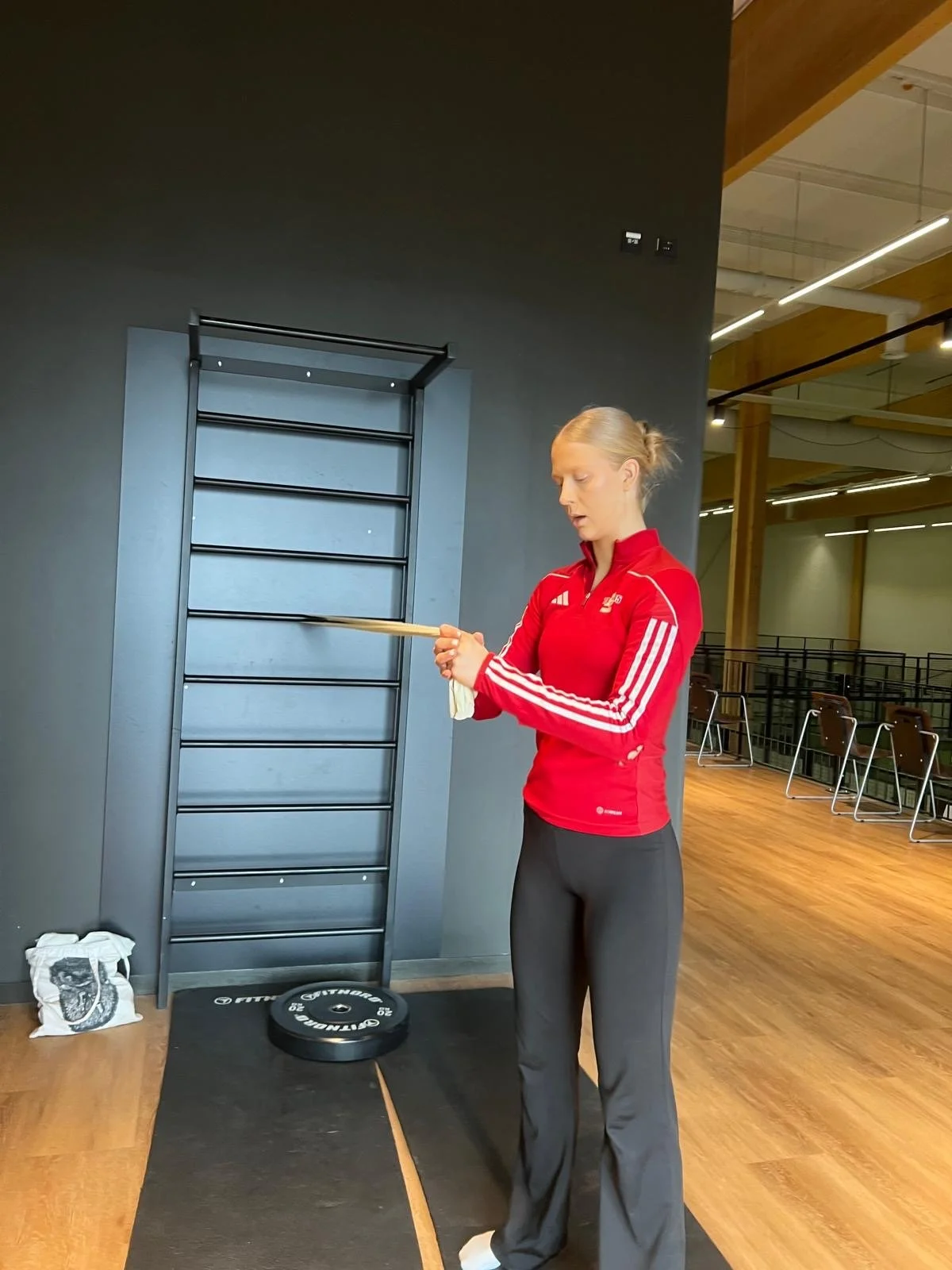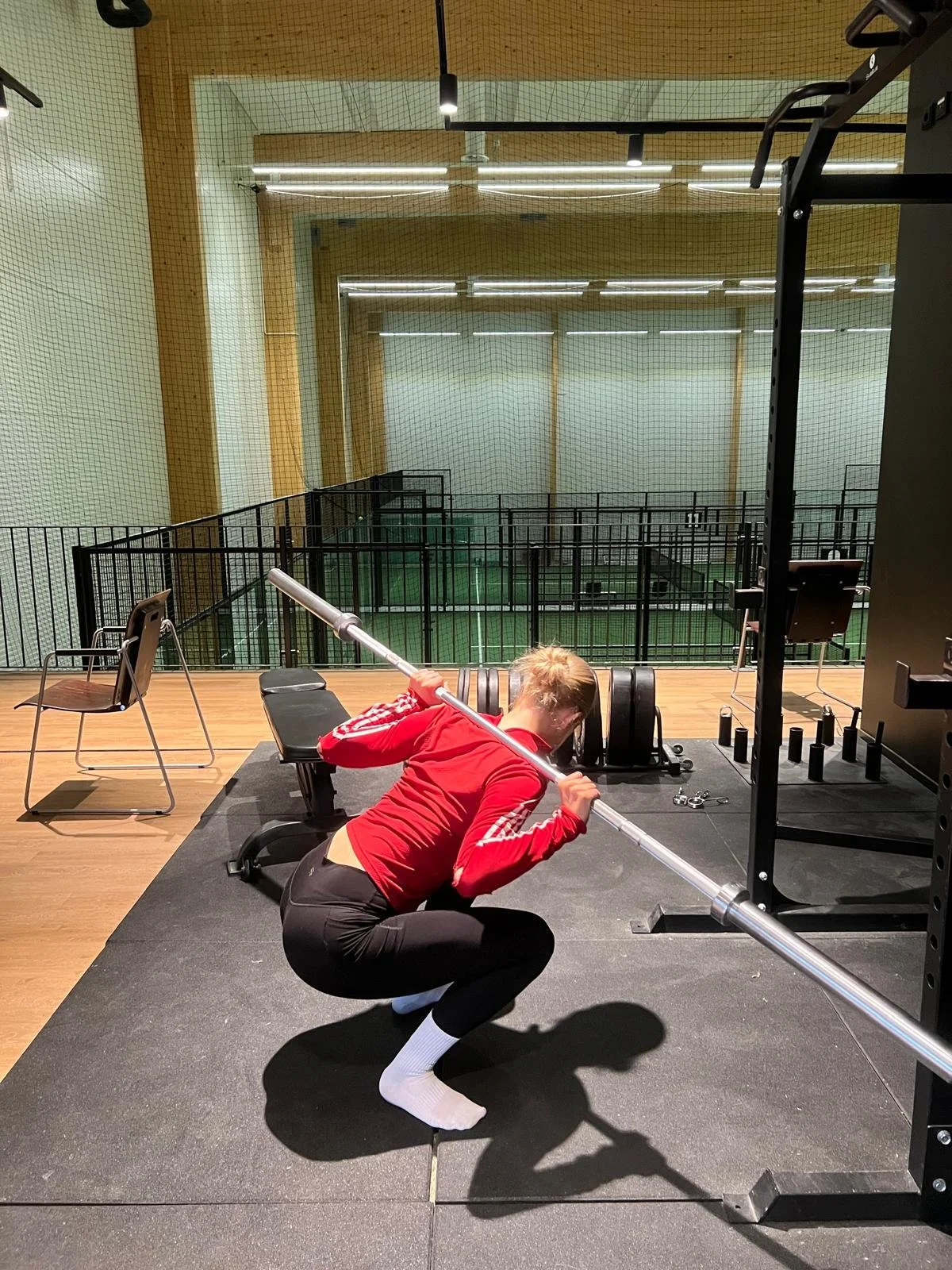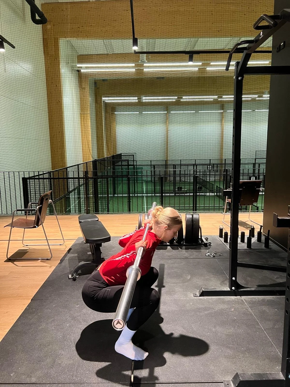 Tanko hartioilla, kyykkyyn alhaalla kierto kummallekin puolelle, ylös ja uudestaan. Saat enemmän voimaa lyönteihin ja pysyt paremmin hallinnassa liikkeessä kentällä.