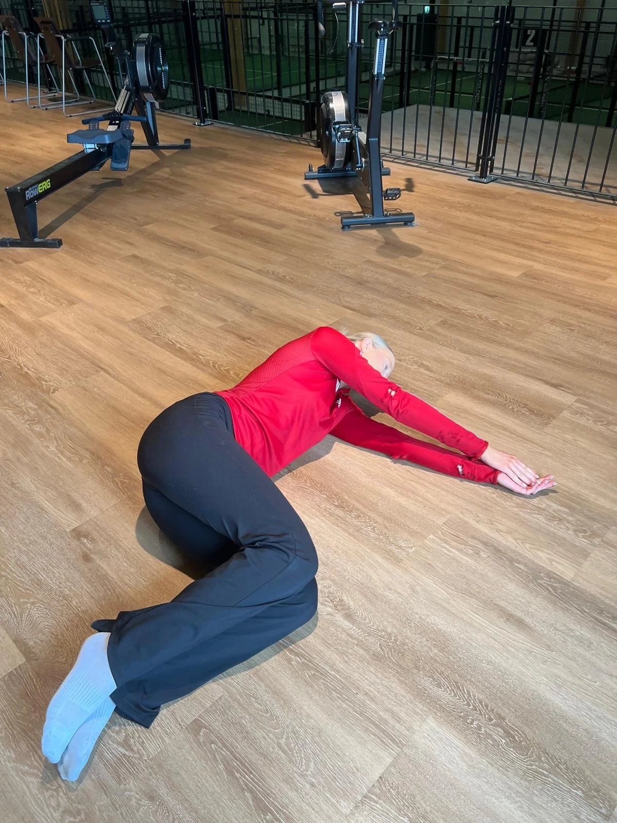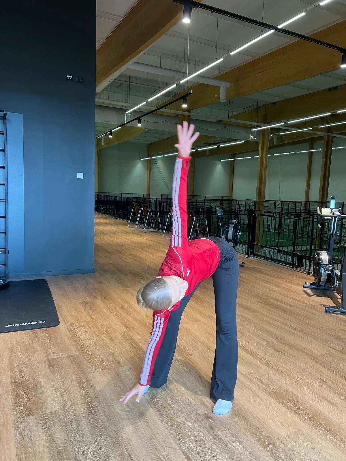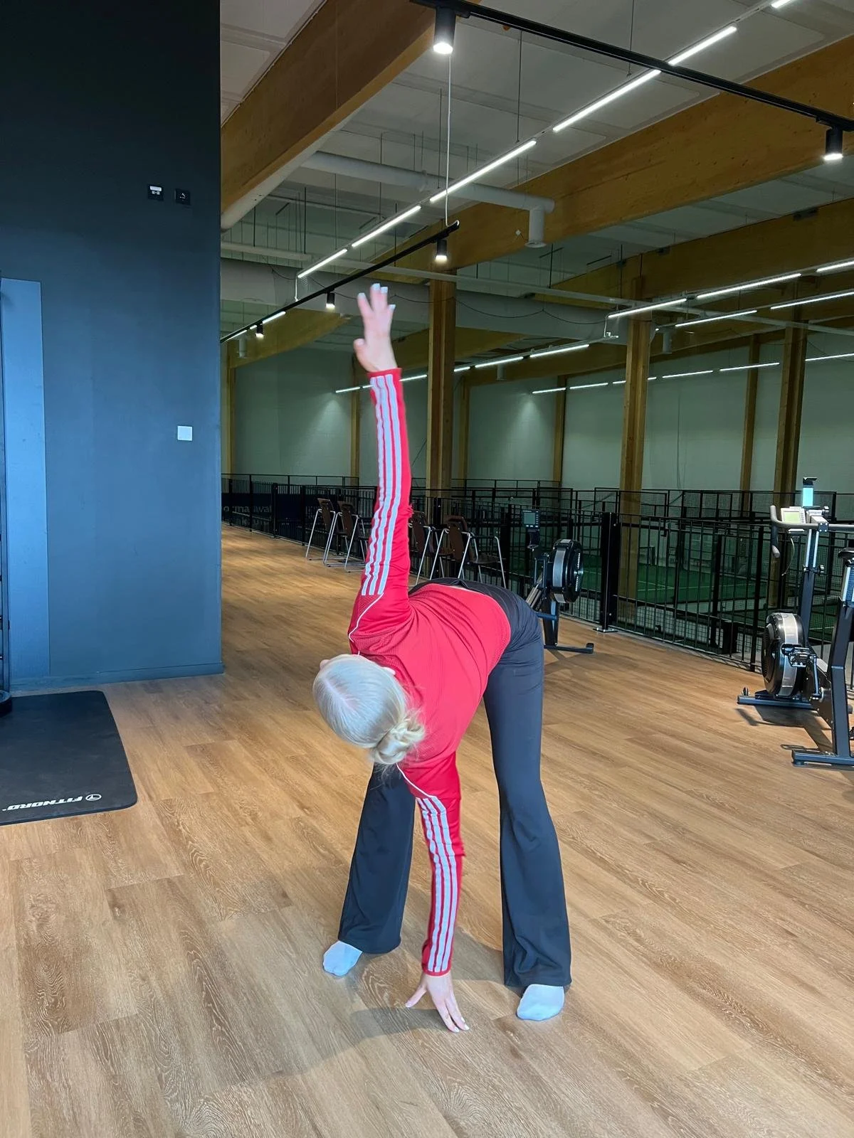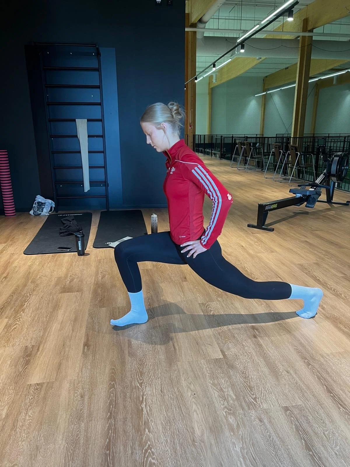 Askel eteen ja kurotetaan varpaisiin eteenpäin, tämä avaa lonkan ja selän.