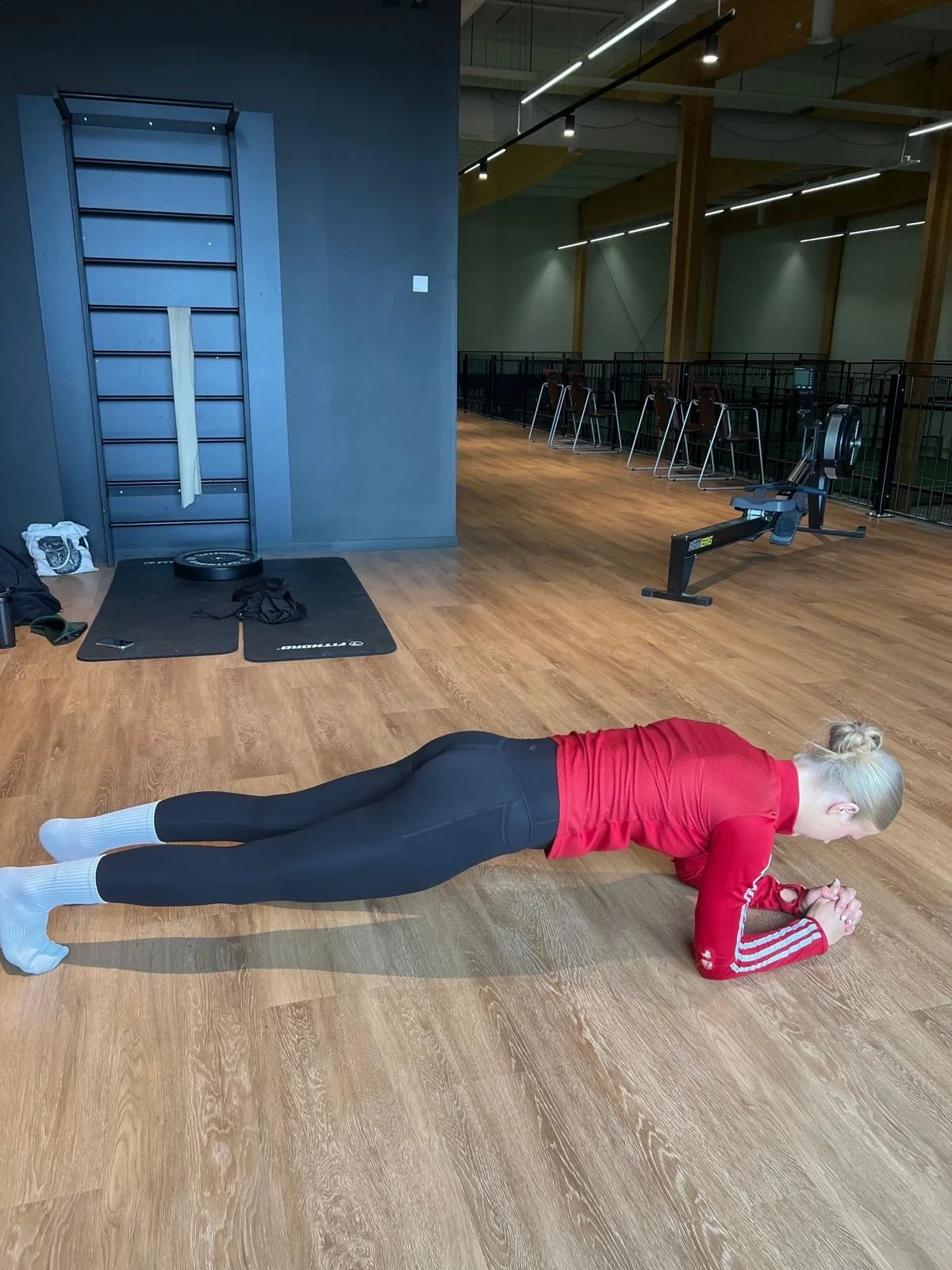 Kädet hartian levyisessä asennossa, kroppa suorassa, jännitä keskivartalo ja pakarat.